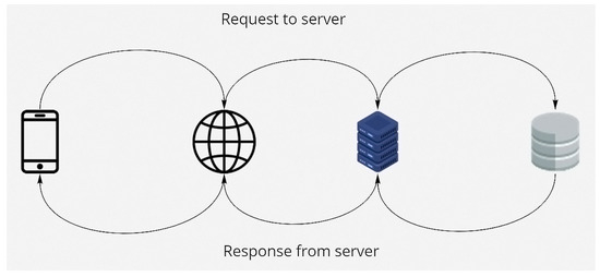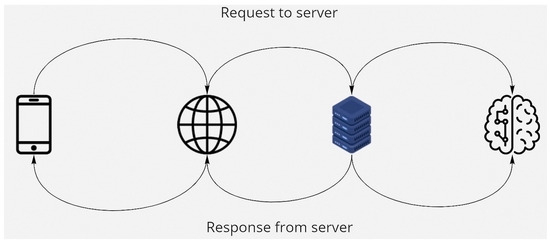 Figure 4. Communication between a mobile device and the server using an API to access the AI modules.- ○
