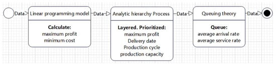 The main objective is to help manufacturing companies to obtain the maximum profit value, avoid unnecessary profit loss due to production sequencing decision-making without an optimal solution, and at the same time to achieve cost reduction and efficiency, streamline redundancy, improve productivity and satisfy the customer’s requirements at any time by arranging the appropriate configuration of production services [5]. This decision-making process solves the problem of order scheduling and production sequencing confusion, and customer modification needs over a period of time. We only need to repeat the cycle of this decision-making process: accounting, stratification and sequencing, and then scheduling and production [6,7,8,9].