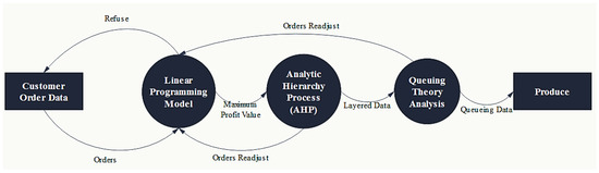 Figure 2 presents the flow and circulation of the entire decision-making process. We will use the series command of the software MATLAB (R2024a) to connect the three models in series, and perform order data analysis, calculation layering and queuing. The following are the model series instructions and process: