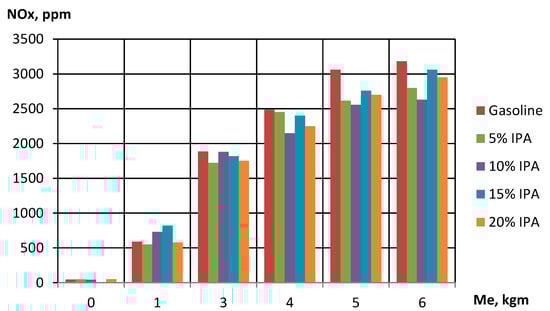 The results for NOx emissions obtained by addition of isopropanol and gasoline are shown in Figure 5.