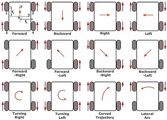 - Mecanum Wheels! Astonishing Engineering of Wheels. Available online: https://engineeringexploration.com/mecanum-wheels-astonishing-engineering-of-wheels/ (accessed on 15 April 2024).