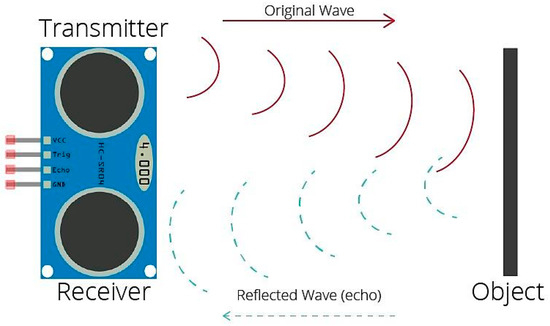 Ultrasonic sensors typically work on the principle of echolocation. They send signals, which, in most cases, are ultrasonic waves (depending on the type of technology used, it can also be IR, LED, etc.) and receive the echo signals back, and can thus calculate the time for its return and the intensity of the signal (Figure 5) [5,6].