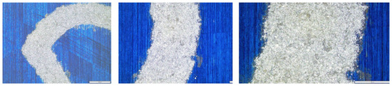 Microscopic image of printed lines on solar cells—50 μm, 100 μm and 200 μm.