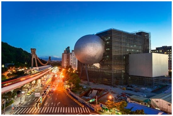Taipei Performing Arts Center building’s exterior with a variety of materials.