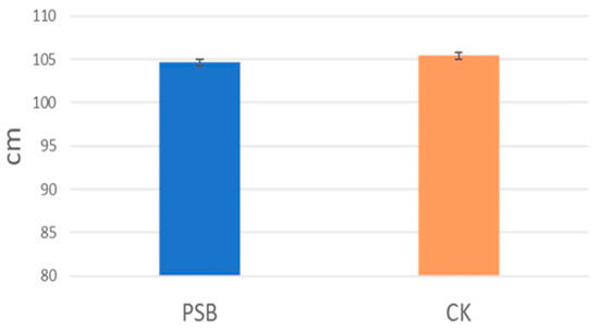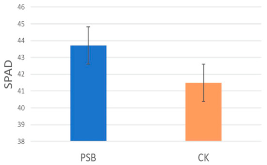 Chlorophyll content and plant height on the 90th day of Oryza sativa cultivation are shown in Figure 8 and Figure 9. Measurements from the SPAD chlorophyll meter revealed that plants in the PNSB cohort contained more chlorophyll compared to those in the control cohort (43.7 ± 4.05 and 40.91 ± 3.41, respectively). The average heights of PNSB-treated and control plants were similar (104.64 ± 4.40 and 105.44 ± 6.80 cm, respectively). We harvested the rice on the 103rd day. In the growing season, a hurricane and pests affected the growth, resulting in a reduced yield compared to prior years. The PNSB and control cohorts had yields of 5786.7 and 5645.0 Kg/hectare, respectively, with the PNSB cohort producing a 2.51% higher yield.