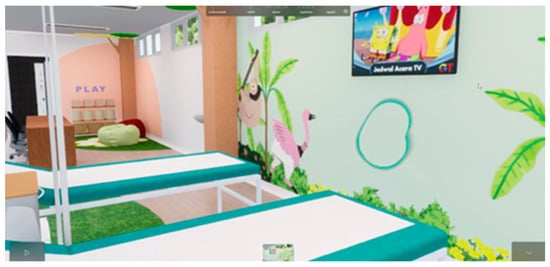 Visual elements, including color, aesthetics, and distractions such as TVs and windows, contribute to the overall interior design experience [,]. Visual factors include visual distractions through audiovisual elements in the space, and aesthetic elements [,,]. After identifying these factors, experiments were conducted by incorporating all these factors in this study. The color factor was neglected in this study because the previous literature found that calming colors were preferred by children [].
