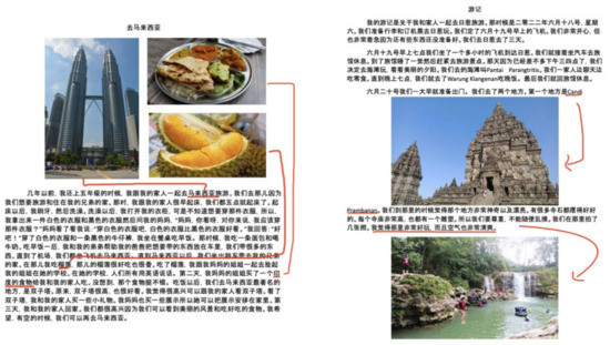 In composing narrative essays, most students used two or three digital images. With more images, the flow and the number of words were increased (Table 1). Based on the examples in Figure 3, students who insert images tend to write down the plot according to the images in their composition, which makes the use of images support students in writing narrative essays.