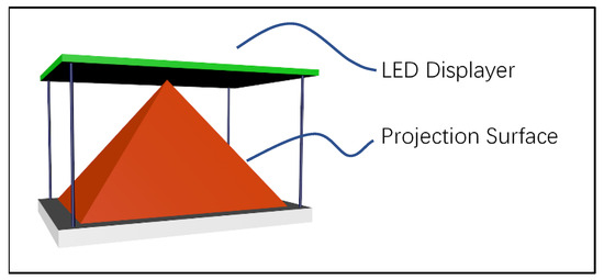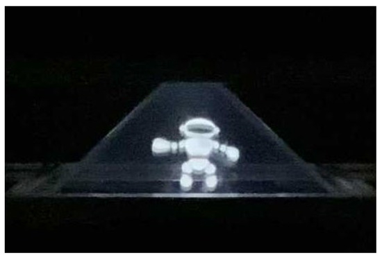 In contrast to Pepper’s ghost illusion technology, holographic projection technology stands as a well-established and advanced industry technology, boasting distinct advantages in this research. This technology encompasses three main categories: gas projection, air projection, and reflection projection. In the specific context of this study, holographic film served as the imaging medium, and glass acted as the projection surface. Three crucial characteristics distinguish holographic projection technology: its ability to offer a 360° vision, adjust the size of the projection, and interchange content seamlessly. The utilization of holographic projection technology introduces unprecedented flexibility in stage placement compared to traditional Cantonese puppet shows. Remarkably, this flexibility is achieved without the necessity for a separate performance and display stage, highlighting the efficiency and innovation inherent in holographic projection techniques (Figure 3).