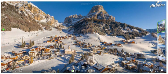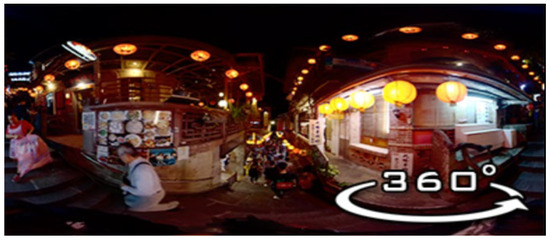 With advancements in digital photography software and hardware, Apple introduced the QuickTime VR (QTVR) format in 1994 (Figure 2); it allows the creation and viewing of VR photography, photographically captured panoramas, and the viewing of objects photographed from multiple angles [9]. This innovation allows for the commercialization and widespread use of panoramic technology, which develops 360-degree panoramic views to encompass spherical panoramas. Panoramic photography is used widely on platforms such as Google Maps, offering photographic collages. Aerial cameras have enabled travel photography enthusiasts to capture 360-degree videos, integrating timeline elements to enhance the viewing experience. Currently, 360-degree photography is also applied in virtual reality (VR) and augmented reality (AR), broadening the scope and application of this technology (Figure 3, Figure 4 and Figure 5).