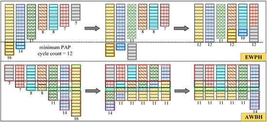 2. Ascending Workload Balance Heuristic (AWBH): Arrange the workloads of different types of nozzles in ascending order. Start from the left and select the largest possible overall workload, then move to the next column and choose a workload equal to the previous column. If the demand for the current cycle is not met by the last column, balance the shortage starting from the last column. After allocation, swap blocks within the same row to maximize the number of identical tasks in the same column.