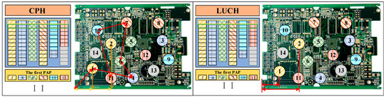 1. Camera Proximity by Workload Heuristic (CPWH): Arrange the feeders in descending order of workload, then allocate them to positions close to the fixed camera. By arranging feeders with the highest workload closest to the fixed camera, the heuristic ensures that components requiring frequent placement are positioned nearest to the inspection point, thereby reducing the time spent on non-productive movements.