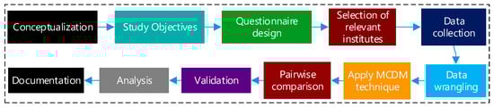 This is a qualitative study that aims to evaluate the technical feasibility of incorporating rapid prototyping in Pakistan’s construction and manufacturing sectors. As in Figure 1, data collection, a structured questionnaire is designed that aligns with the methodology of AHP and is then circulated among the different stakeholders, which include industrial experts and universities including site engineers, technical foremen, university professors, and lab engineers in construction and manufacturing industries in Pakistan. The responses obtained from the questionnaire are served as the input for analysis, and analysis is conducted by using expert choice software.