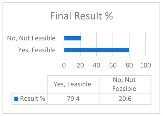 These results not only endorse the positive impacts but also provide a beneficial environment for synergies and advancements in construction as well as manufacturing fields, providing stakeholders with a comprehensive perspective when considering the implementation of rapid prototyping practices in Pakistan. The recognition of challenges through the “Not Feasible” aspect adds depth to the consideration, ensuring a well-rounded understanding of the feasibility landscape.