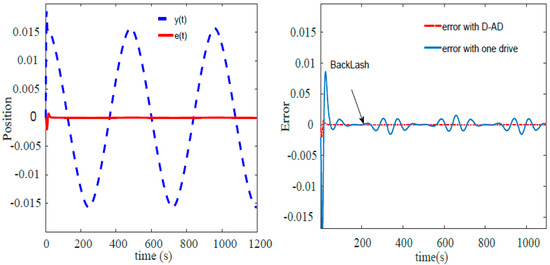 The backlash has been eliminated successfully for swinging loads. Net driving torque that helps to maintain the positional accuracy is depiced in Figure 3. Position and Error graphs with the utilization of the Drive-Anti Drive mechanism are shown in the left half of Figure 4. Comparison of error function by utilizing single Drive and Drive-Anti Drive are shown in the right half of Figure 4.