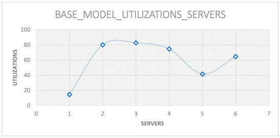 The base model analysis in Figure 3 identifies 2, 3, and 4 with high utilization rates, indicating that bottlenecks at these levels exceed 70% and the significant demand for their services. These findings indicate the need to optimize workflow management to enhance the system. The base model’s throughput of 0.975 provides a benchmark for assessing current performance.