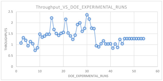 Figure 8 shows the throughput results for all the 58 combinations made by DOE using CCD. The results are presented in graphical form, highlighting the variations across different parameter values.