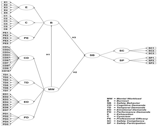 H1 is in accordance with previous research regarding mental workload, finding that it increases simultaneously with burnout; in other words, the more people feel time pressure, such as increased shift duration, and higher cognitive demands, the more they will feel burnout at work [2]. H2 states that a high mental workload in employees can cause an increase in human errors and results in work accidents due to unsafe behavior. Work that requires constant mental effort consequently leaves limited resources to manage safety behavior [3]. H3 regarding burnout in the work environment can cause employees to ignore some safety norms, thereby exhibiting behaviors that are not conducive to safety and have an impact on humans at work and weaken compliance with the safety behavior standards [17].