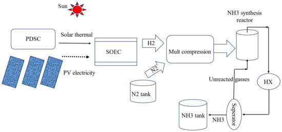 - This is a pure solar thermal and PV-based system for hydrogen and ammonia utilizing high-temperature SOEC.