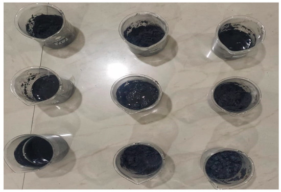 Figure 4 illustrates the nine samples of the AFM medium, each meticulously prepared with distinct ratios of waste rubber, EDM oil, glycerin, and SiC particles. These samples are integral to the experimental investigation aimed at optimizing the surface finish of FDM-printed Y-shaped nozzles through abrasive flow machining.
