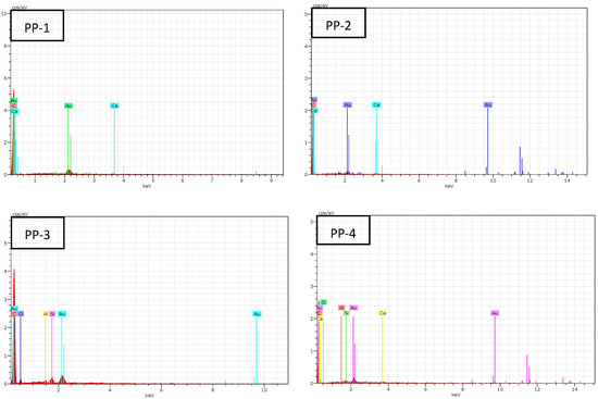 SEM and EDX analysis of PP-1, PP-2, PP-3, and PP-4.