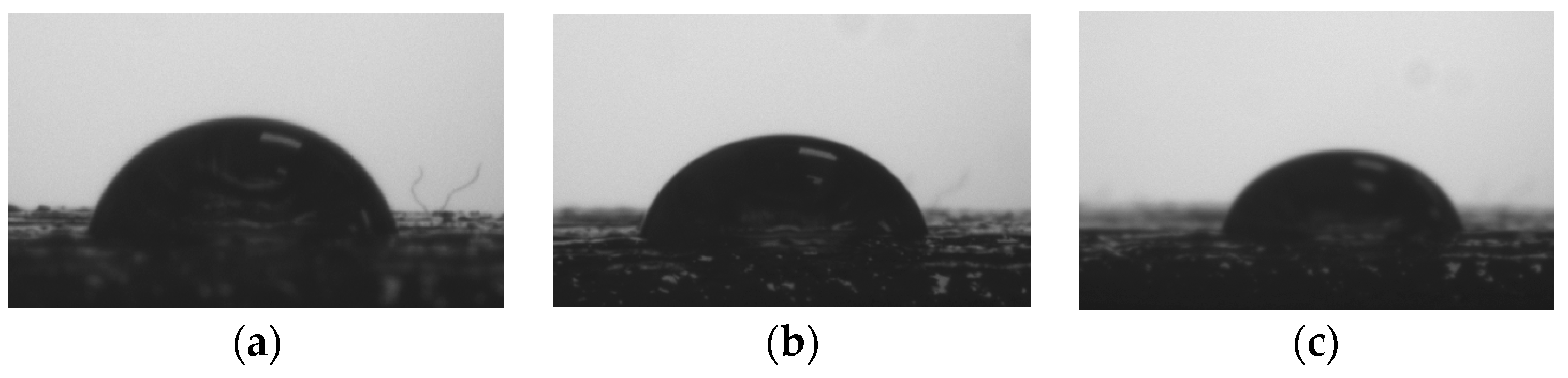 To examine the wettability alteration, the contact angle change is determined here using the Kruss DSA20E Easy Drop Goniometer. For this, the sandstone collected from an outcrop in Gujarat, India, is crushed finely into 100 mesh sizes and mixed with Bombay high crude with an API gravity of 43.6 to form a paste to mimic reservoir surface conditions. After making the surface, the contact angle change is examined over time using the mentioned equipment with droplets of fluid, such as DI water and synthesized silica nanofluid. The data obtained is shown in the below
