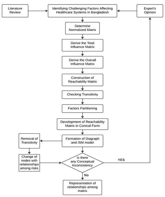 At first, 11 challenging factors affecting the healthcare system of Bangladesh were found from a literature review and taking expert opinion. A pairwise comparison was made to create a direct relation matrix. The average matrix of different experts’ opinions is shown in