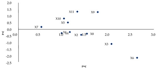 Table 2 highlights the (r + c) and (r − c), and the cause–effect diagram is presented in