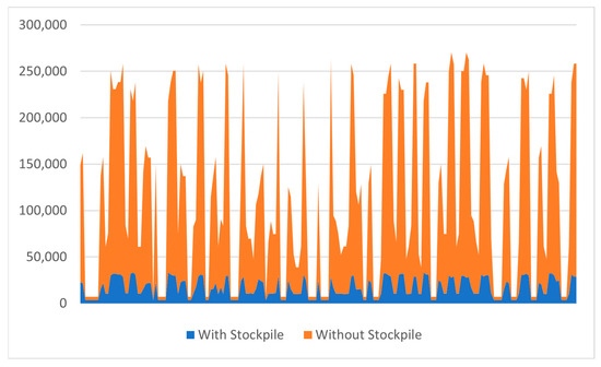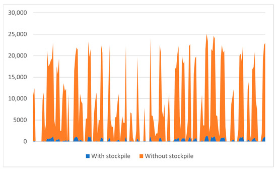 The study divides its findings into two parts: the effectiveness of stockpiling strategies in crisis mitigation and a Morris sensitivity analysis of four pivotal parameters. Preliminary findings from 200 configurations in Figure 1 and Figure 2 reveal the role of stockpiling in diminishing unmet demand, a critical observation during the COVID-19 PPE crisis. The model, explained in Section 3, significantly reduces objective function values and unmet demands by utilizing stockpiles (depicted in blue) instead of relying solely on both suppliers, as showcased in Figure 1. Despite the reduction, Figure 2 highlights residual unmet demands, albeit considerably fewer compared to scenarios without stockpiling—reducing missed demands from around 22,000 units to about 2000 units in certain cases. Yet, the persistence of unmet demands in some scenarios suggests the necessity for accurately determining optimal stockpile sizes. The study underscores the criticality of unlimited stockpile inventories for effective crisis management, recommending that optimal stockpile sizes be derived by accounting for the surplus needed beyond the capacity of traditional suppliers to meet demand surges, with the main hurdle being the accurate prediction of future demand, as discussed in the study’s conclusions.