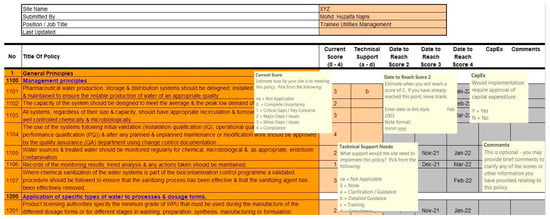 We accessed the latest WHO guidelines on ‘Water for Pharmaceutical Use’ (annexure) to establish a benchmark for evaluating the water management system against industry standards. Each chapter of the guidelines was carefully reviewed, and the paragraphs were broken down into individual points for clarity and ease of reference. These points were then organized into corresponding categories within an Excel tool, facilitating the systematic assessment and identification of gaps in compliance. An extract is attached in Figure 2.