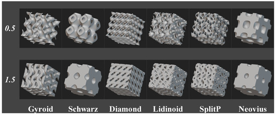 9. Fisher, J.W.; Miller, S.W.; Bartolai, J.; Simpson, T.W.; Yukish, M.A. Catalog of triply periodic minimal surfaces, equation-based lattice structures, and their homogenized property data. Data Brief 2023, 49, 109311. [Google Scholar] [CrossRef] [PubMed]