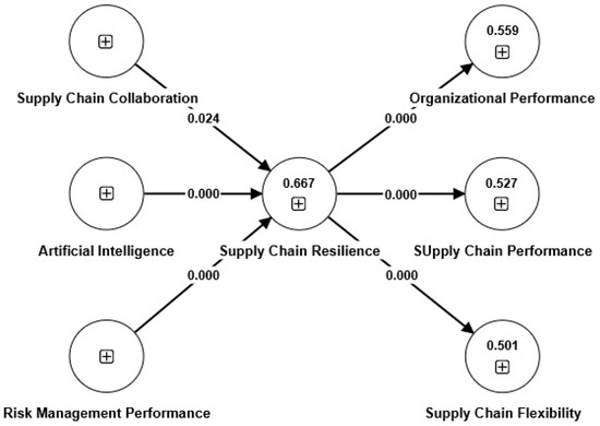 The results obtained from Table 3 show that AI builds a foundation for the development of a resilient supply chain for both operation and organizational performance. This resilience further increased as a result of efficient risk management with collaboration efforts made within the supply chain. According to [20], this is because AI enhances resiliency in the supply chain. More importantly, supply chain resilience ensures outstanding organizational performance, enhances flexible supply chain performance, and increases the ability to manage change effectively—all key qualities necessary for firms to adapt to dynamic markets. According to [21], the concept of supply chain resilience is characterized by a source of competitive advantage through its capacity or ability to recover from the impact of disruptions within the system promptly. [22] It is posited that building flexibility into supply chains for enhancing resiliency is yet one more measure to gain a competitive edge in the market.