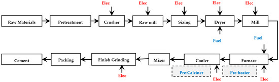 Flow diagram of energy-intensive cement [2,4] production (wet process).