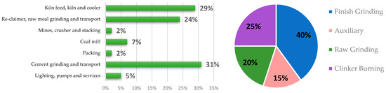 Electricity consumption in various cement-making processes [3]. Distribution of energy among equipment used in cement manufacturing [4].