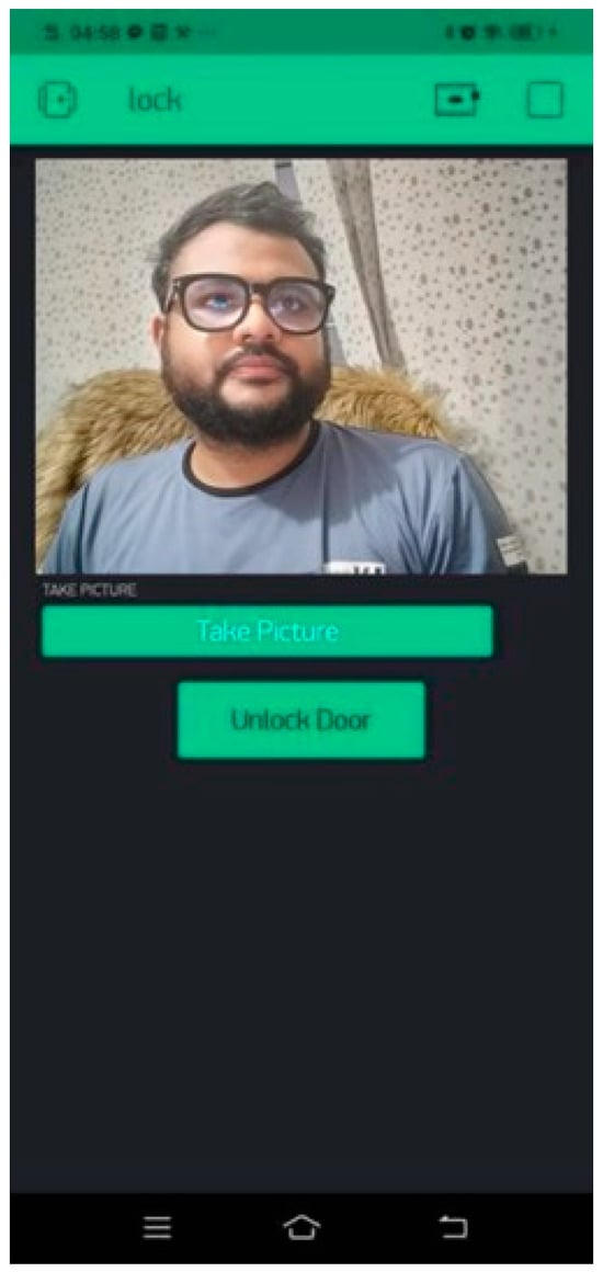 We used an Android app to monitor and control the door lock. Blynk is a complete collection of tools that enables anyone to remotely create and manage connected electronic devices of any size. Millions of commercial connected goods as well as personal IoT projects can be prototyped and deployed using this platform. Blynk offers a no-code way to construct iOS, Android, and web applications, link hardware to the cloud, and analyze both recent and old device data. Users can access other helpful services, receive critical notifications, and remotely operate devices from anywhere in the world. With the Blynk app, we can control our smart door lock system as shown in Figure 4.