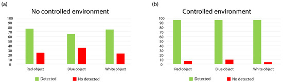Results obtained for the following: (a) Color detection—uncontrolled environment. (b) Color detection—controlled environment.