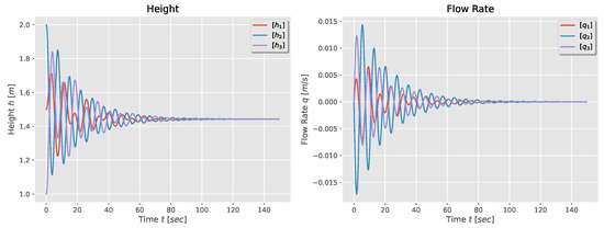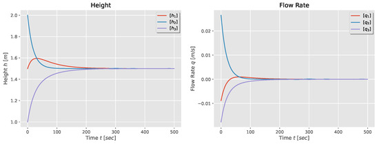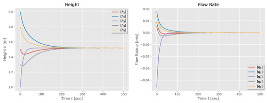 Moreover, if the initial flow rate is zero, the height in each tank converges to , which is the same as in the first-order model.