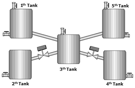 Despite the fact that interactive tank models have been studied in great detail [13,14,15] because of their wide range of applications in power generation, chemical processes, food and beverage production and storage, water supply and transportation, and oil and gas refining and storage, most of the studies have focused on their control. Further, the few that considered a MAS approach concentrated on computational techniques for its estimation, simulation, and control [16,17,18].