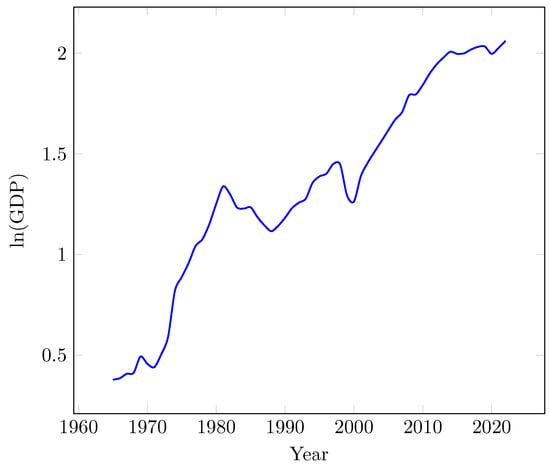 A simpler time-series model resulted when using the logarithm of the GDP instead of the original data, which is shown in Figure 2.