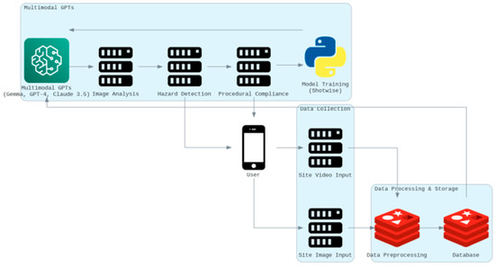 System flow for petrochemical safety monitoring, outlining the data capture and processing steps involved in multimodal AI hazard detection.