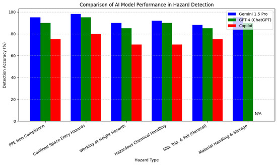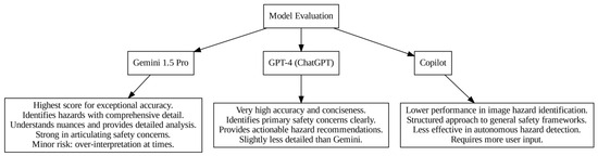 The three AI models—OPENAI GPT-4 Visual Multimodal, Gemini 1.5 pro, and Copilot-4o—were tested on their ability to identify hazards in petrochemical environments using a predefined dataset of images and videos. The models were evaluated with the results summarized below in Table 3 and Figure 6. Limitation of the model is shown in a block diagram in Figure 7: