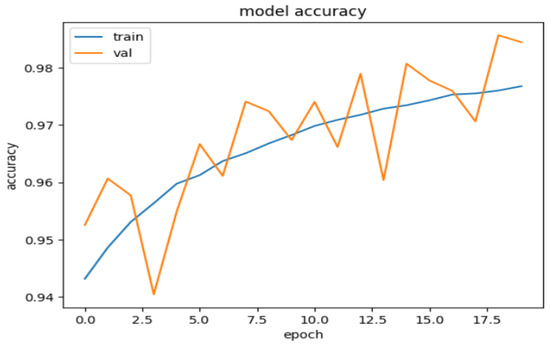 Figure 2. Model accuracy score. - HRV Metrics Computation: The system processes real-time heart rate inputs to compute key HRV metrics such as RR intervals, SDRR, RMSSD, pNN25 and pNN50 and LF and HF components. HRV metrics are derived from heart rate by analyzing RR intervals—the time between consecutive heartbeats. As shown in (Figure 3), the heart rate samples are used to calculate the HRV metrics such as MEAN_RR, RMSSD, pNN25, and pNN50 using the appropriate formula. These HRV metrics are critical for accurately predicting stress levels, as they reflect the autonomic nervous system’s response to stress. Leveraging these metrics in the model allows for a robust assessment of stress conditions.