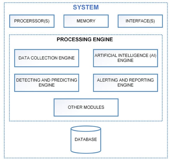 The proposed system for monitoring the health of elders and patients provides automated real-time health tracking and predictive analysis. The architecture of the proposed system is divided into three main categories which are hardware components (sensors, input/output devices), an AI-based processing engine, and a communication network. These components, shown in Figure 1, work together to continuously track the health of users and report it in real-time.