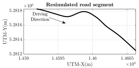 The kinematic single-track model is implemented in MATLAB. The simulations are run using a real-life road section from Hungary, Road 31. The path is shown in Figure 2. The model given in Equation (1) is implemented in MATLAB, too.