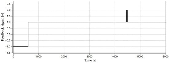 The accurate setup and calibration are demonstrated by the corresponding image in Figure 4, illustrating how the reference data align the recorded values on the test bench with the appropriate timing during the tests. The control function was also tested on another engine test cycle, which is more dynamic in terms of speed. The “Feedback signal” sent to the dynamometer can take the next values: