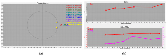 Based on the results presented, it can be concluded that there is no significant speed dependence of the identified dynamics in the speed range below 30 km/h. The only speed-dependent component of ID models is that of the gains with increasing speed. Of course, the gains presented here are only the gains of the internal linear OE model. At higher speeds, the heeling angle of the vehicle body depends on lateral acceleration. For this reason, the accelerometer sensor data at higher speeds showed a higher proportion of the effect of the G force due to the smaller than 90° angle between the sensor and the ground. The observation that the lateral dynamics of the vehicle are not speed-dependent at low speeds will help to develop autonomous vehicle functions that require low-speed driving, e.g., parking, obstacle avoidance in urban environments, etc.