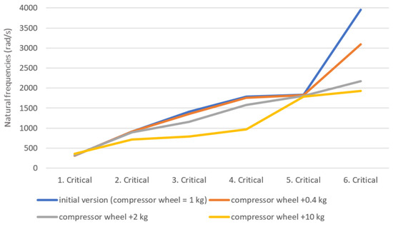 Compressor wheel mass change influence on critical speeds.