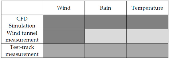 According to a number of publications in the field of energy efficiency in electric vehicles, examining the effect of weather conditions on a vehicle’s aerodynamic parameters is highly important and relevant today. Different weather effects should be analyzed. The influence of rain droplet size, humidity and mass flow on the drag coefficient is to be studied further. Air temperature can affect the drag coefficient as well. Cumulative states of precipitation and wind effects that influence energy efficiency should also be researched.