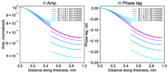 TCR dependence of a theoretical curve of the amplitude ((i) Amp.) and phase lag ((ii) Phase lag) on the sample’s side surface.