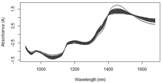 NIR spectra (908–1676 nm) of the Habanero chilli samples following SNV smoothing.