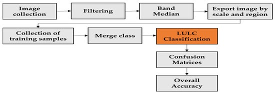 The LULC classification workflow integrated in Google Earth Engine (GEE).